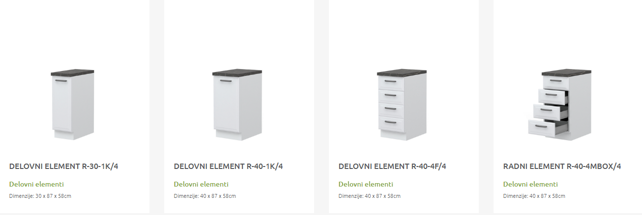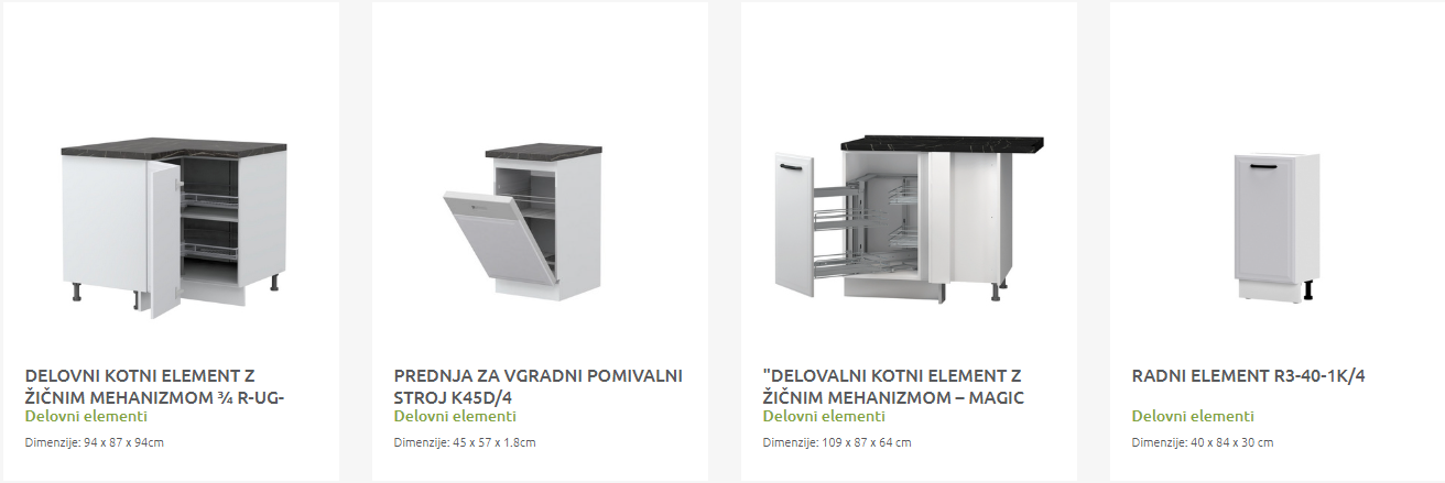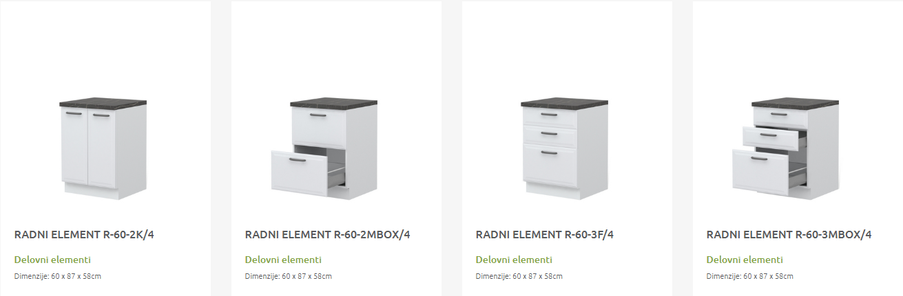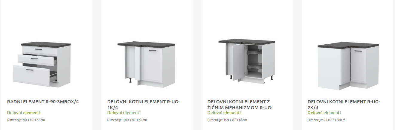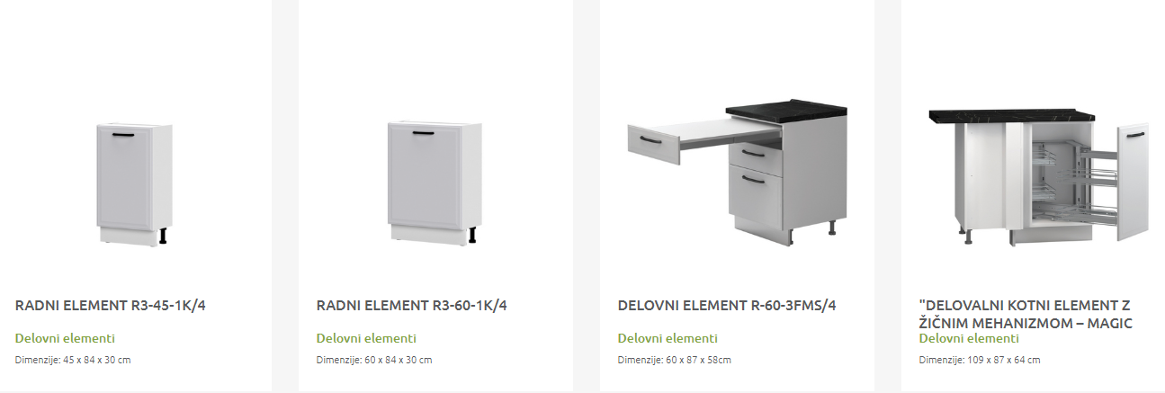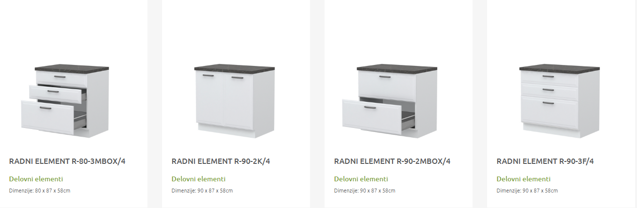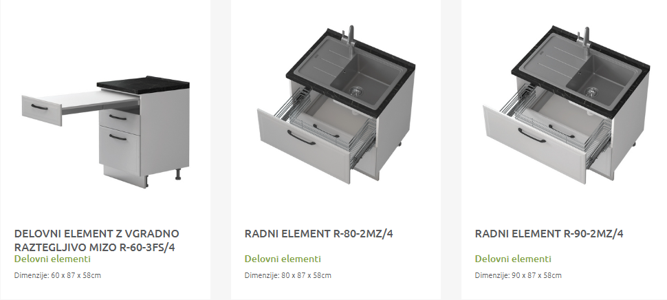 - Cena elementa ne vključuje podnožja in delovne plošče.