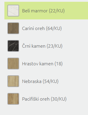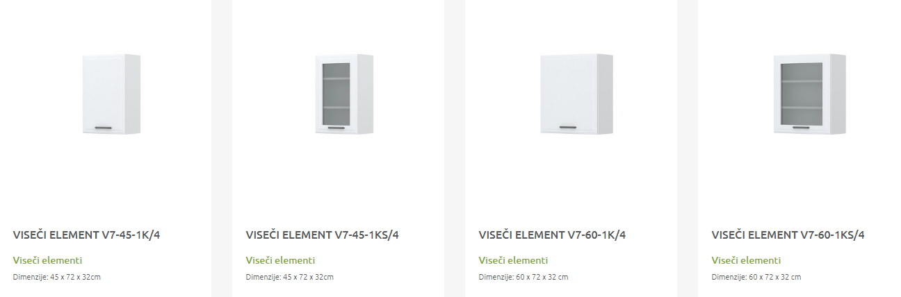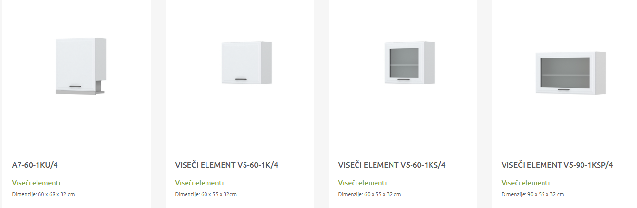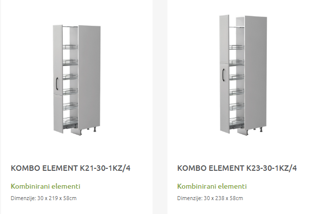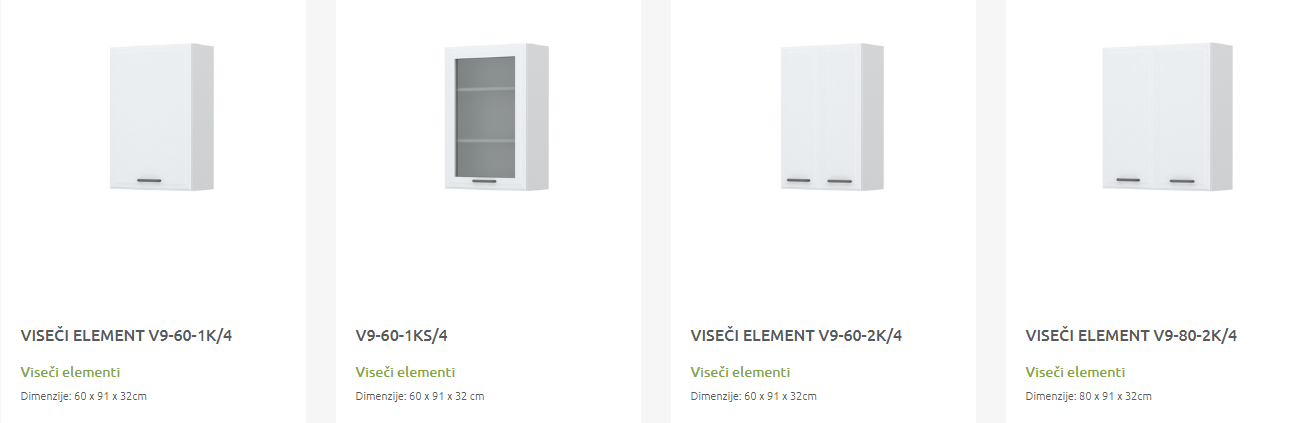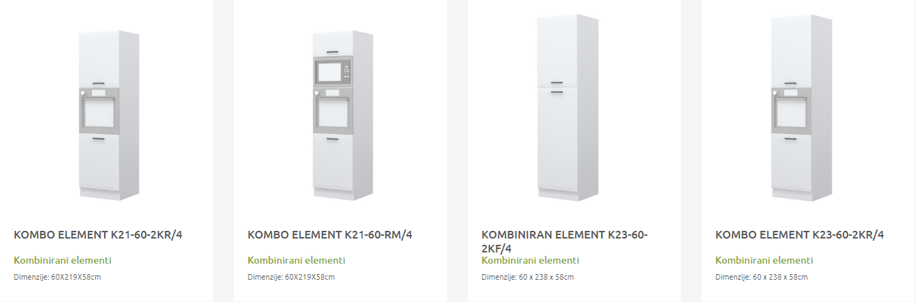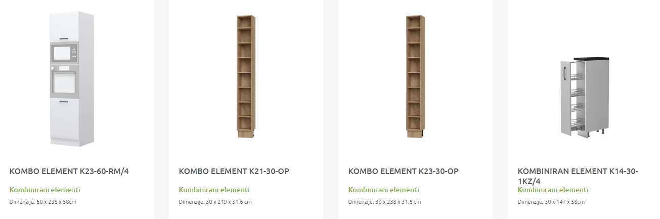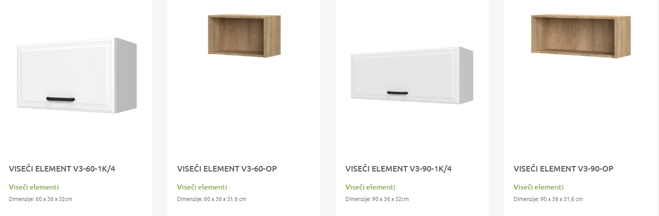 - Cena elementa ne vključuje podnožja in delovne plošče.