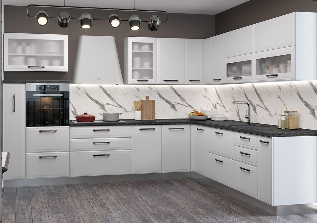 - sprednja stran s profiliranim MDF okvirjem, lakiranim z UV lakom BISERNE SIVE z mat učinkom